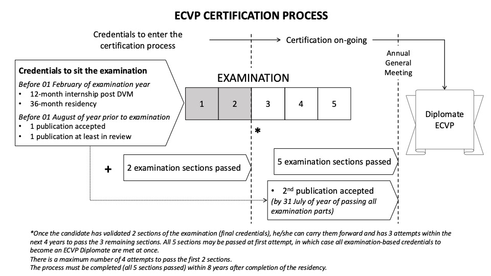 The examination tests a balanced mix of general, specific, theoretical and practical knowledge relevant to the veterinary pathology profession. It comprises five sections: Histopathology, Gross Pathology, General Pathology, Veterinary Pathology and Comprehensive Pathology. To pass the examination, a candidate must pass each of these five sections.